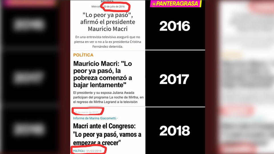 Macri aseguró ayer que “lo peor ya pasó”, algo que ya había dicho en 2016 y 2017