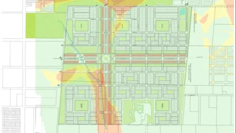Como se observa en el mismo, en el suroeste del plan debajo de las tierras pasa el arroyo Regimiento y, a pesar que en un posible desborde podrían inundarse lotes, la Comuna los diseñó para que sean loteados y se construyan distintos tipos de viviendas con alturas variadas.