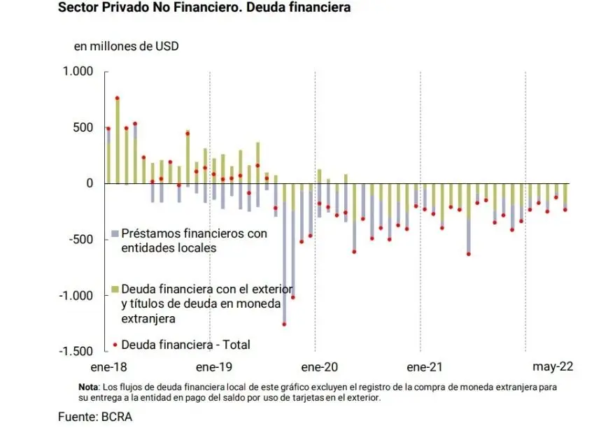 Donde no hay dudas que existe un festival, es en la salida de dólares para financiar el pago de las deudas e intereses que los grupos económicos han tomado con el exterior, así como también sobre la fuga de capitales. Datos del Mirador de la Actualidad del Trabajo y la Economía de economistas ligados a la Universidad Nacional de Rosario (UNR) y de la Evolución del Mercado de Cambios y Balance Cambiario del Banco Central de Mayo de 2022, dan cuenta que desde 2020 se fueron 12.102 millones de dólares para que los grupos económicos paguen sus deuda e intereses, mientras que otros 7.032 se fugaron del sistema, todo lo cual implica un monto total mayor a todo el superávit comercial del año pasado, que fue el más alto de los últimos doce años, o prácticamente el doble que el proyectado para este año.