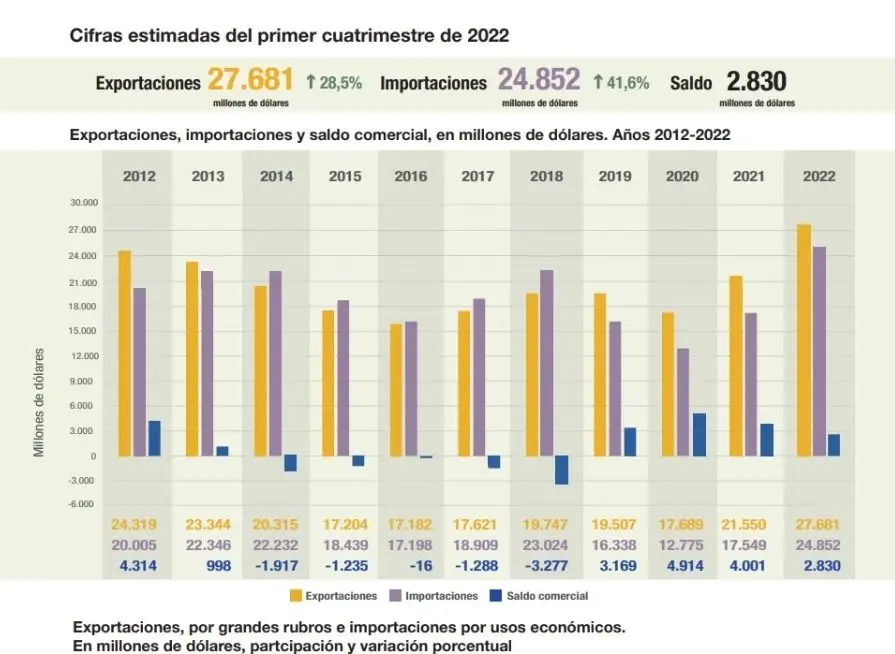 El dato frio marca que en relación al primer cuatrimestre de 2019 -es decir el año previo al cierre de la economía por la pandemia y al posterior rebote de 2021- las erogaciones por importaciones aumentaron un 41,9 por ciento, al pasar de 19.507 millones de dólares a 27.681 en el mismo lapso de este año. Sin embargo, cualquier variación importadora se vincula en gran medida con el grado de actividad, especialmente del sector industrial, al punto que un punto de crecimiento en este rubro, implica tres puntos de aumento de importaciones.