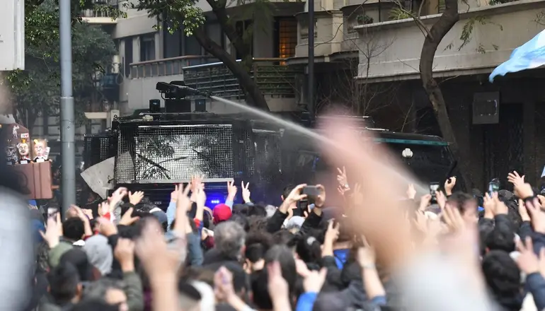 Con camiones hidrantes y bastones atacaron a los manifestantes que fueron a apoyar a Cristina Kirchner.