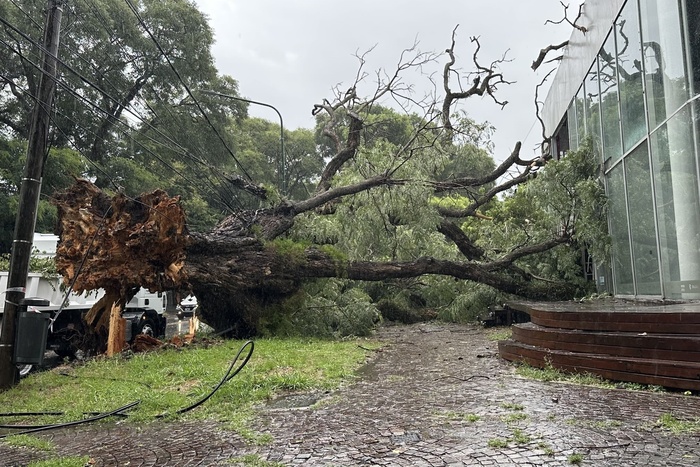 A raíz de los fuertes vientos, muchos árboles y postes de luz se desprendieron del suelo, causando accidentes en la vía pública. Las fotos de las calles cortadas y los daños en los edificios por estos derrumbes se multiplican desde las primeras horas del día.
