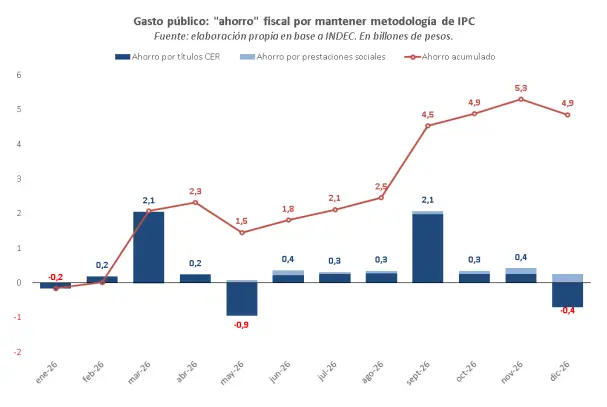En efecto, la decisión del Gobierno excede el plano estadístico. Al mantener un IPC que subestima la situación de los hogares, el Estado reduce automáticamente la indexación de jubilaciones, salarios públicos, asignaciones sociales y títulos ajustados por CER, generando un ajuste fiscal significativo. Según estimaciones privadas, la continuidad de la canasta 2004/2005 le permiten al oficialismo evitar actualizaciones por casi 5 billones de pesos, equivalentes a cerca de 0,5% del PBI.