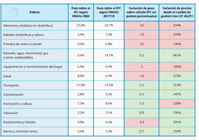 Con una canasta basada en consumos de hace veinte años atrás, la inflación desde que asumió la actual gestión nacional pero calculada con ponderadores actualizados se ubicaría 20 puntos por arriba del dato oficial, traccionada sobre todo por la suba de servicios. Así, el Gobierno se permite licuar salarios, jubilaciones y ajustar aún más el gasto público.
