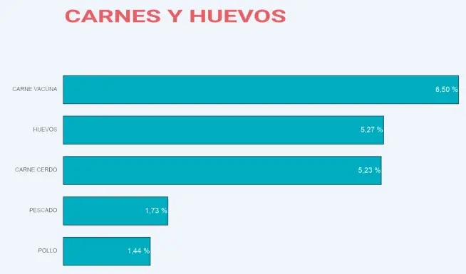 En el caso de los lácteos, por ejemplo, se observaron subas en queso cremoso (+3,46 %) y otras variantes de quesos. En carnes, además de la carne vacuna y de cerdo, también se registraron incrementos en huevos y otros derivados.