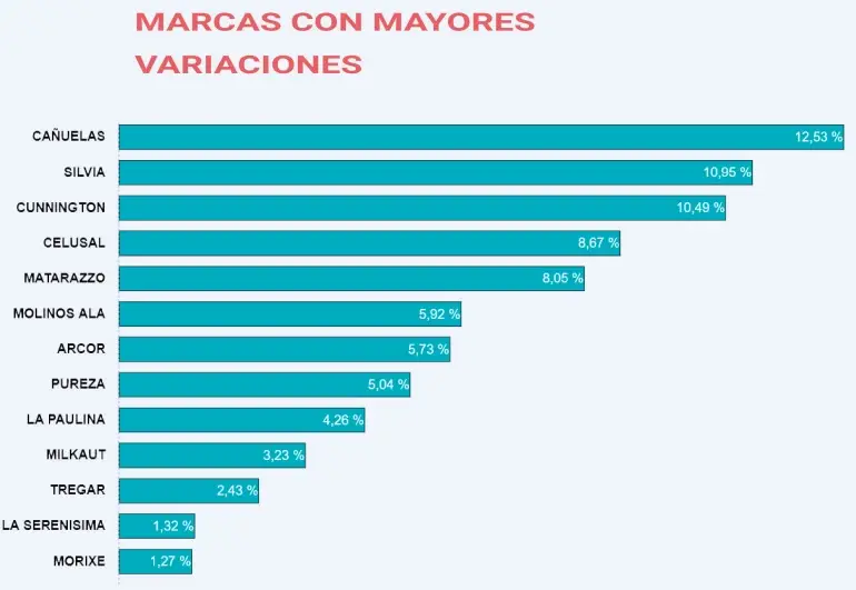 Los resultados muestran subas en distintos rubros de alimentos, con incrementos que en algunos casos superan ampliamente el promedio mensual. Entre los aumentos más significativos se destacan: